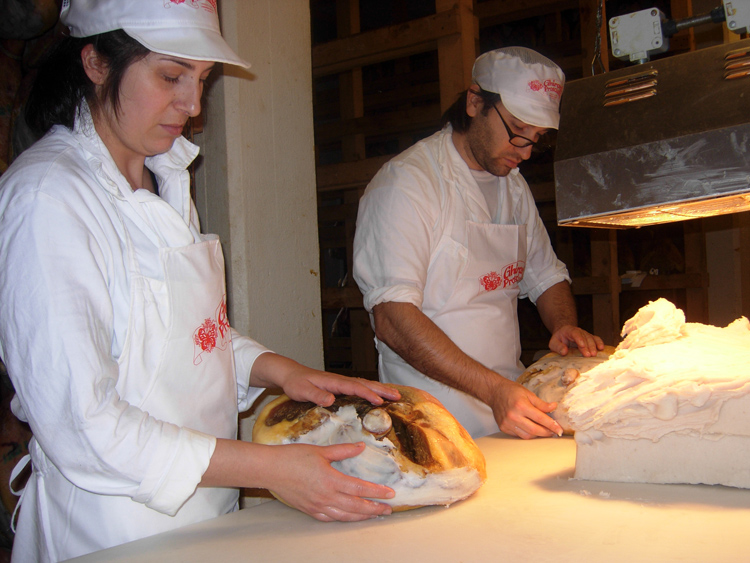 sugna, a paste made of pork fat, rice flour, salt and pepper, to protect and keep the lean part of the ham soft.