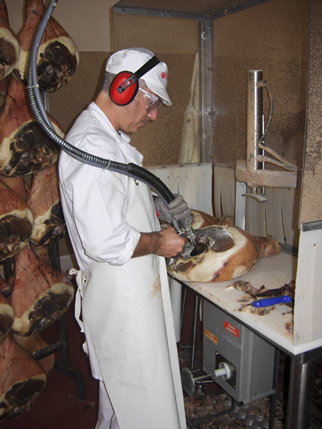 Verso la fine di questo periodo si esegue l'operazione di toelettatura, finalizzata a rimuovere le parti sporgenti della carne mediante l'uso di coltelli e dell'osso dell'anchetta per mezzo di un seghetto elettrico.